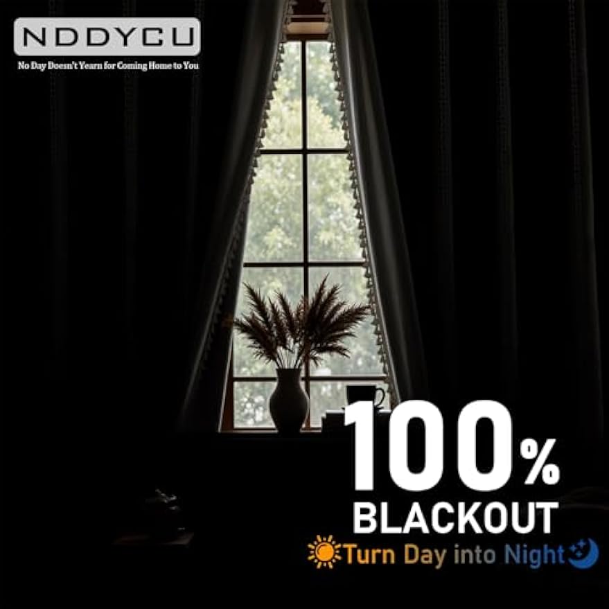 Boho Blackout Curtains Farmhouse Beige 2 Panels Curtains 84 Inch for Living Room, Linen Tassels Curtains Cotton Embroidery for Bedroom Rod Pocket Drapes Vintage Rustic Western Window