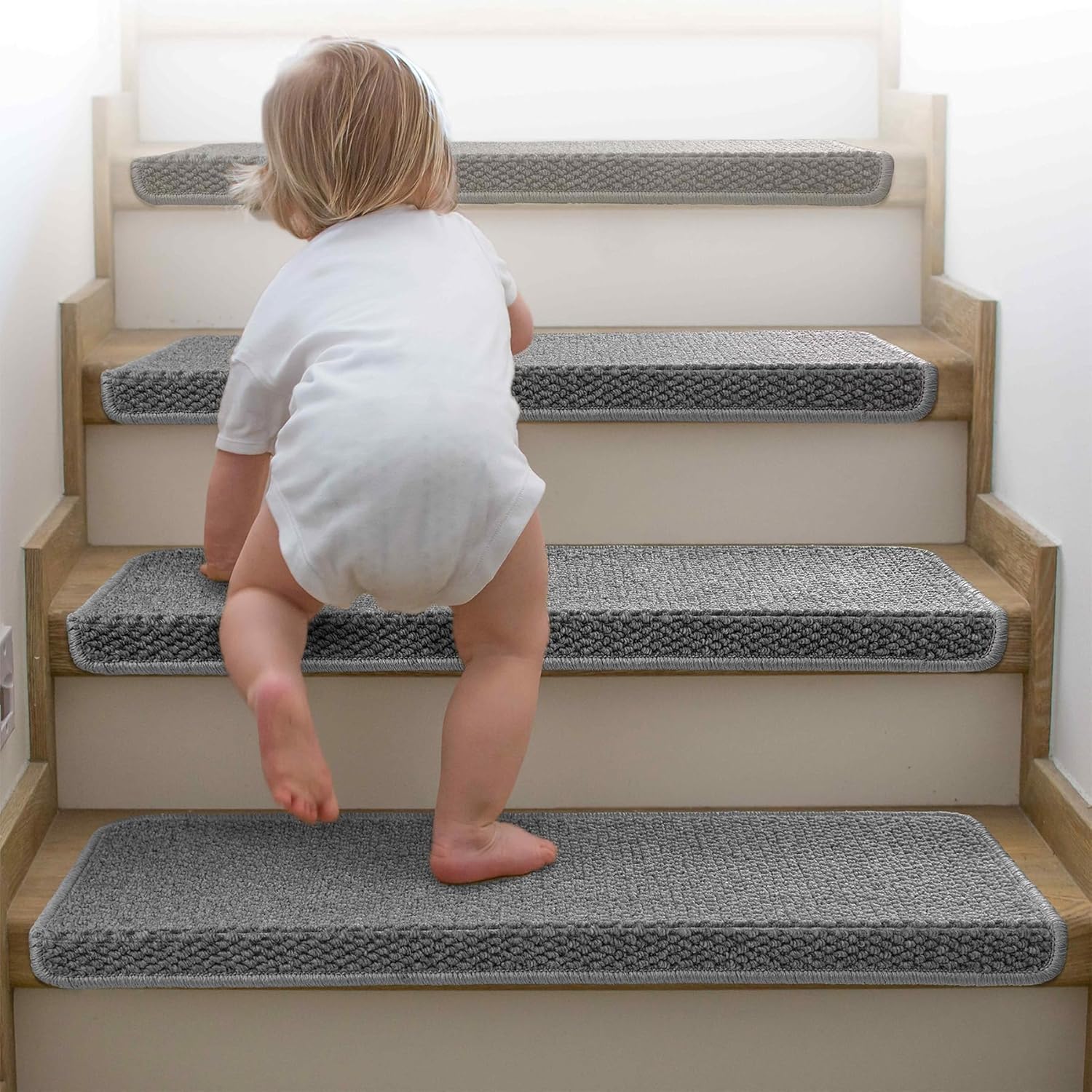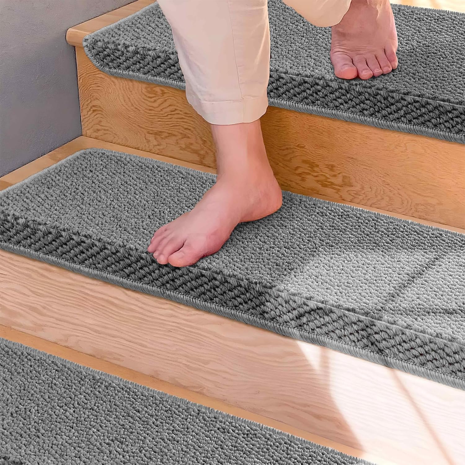 Bullnose Carpet Stair Treads, Non Slip Stair Treads for Wooden Steps Indoor, Stair Runner, Soft Stair Rugs, Edging Stair Protectors, Washable, 29.5"x9.5"x1.5" 14pcs, Grey