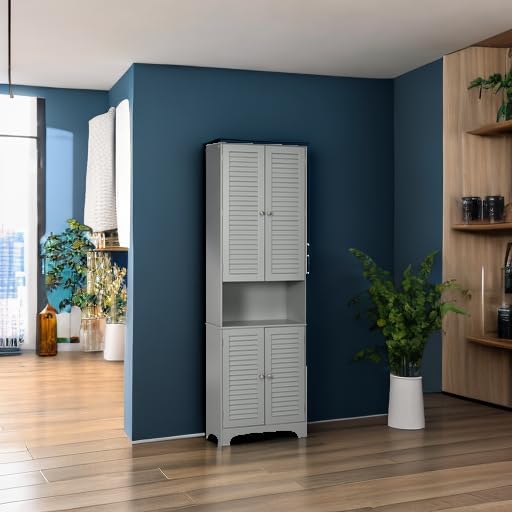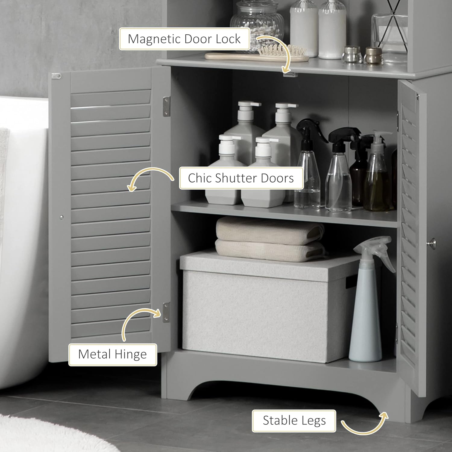 HOMCOM Tall Narrow Bathroom Storage Cabinet with Doors and Shelf Adjustability, Freestanding Linen Cabinet with 2 Cabinets and Countertop, Gray