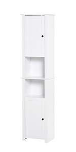 This is a superb contemporary bathroom storage cabinet is designed beautifully and is handcrafted with solid MDF tall bathroom storage tower from HOMCOM, which has chic shutters and height-adjustable shelves, it perfectly fits in narrow spaces with strong storage functions. Made of P2 grade MDF material and particleboard with melamine surface, it is durable, natural and keeps the air fresh in your house. Also, it can function as a delicate decoration article in your house.