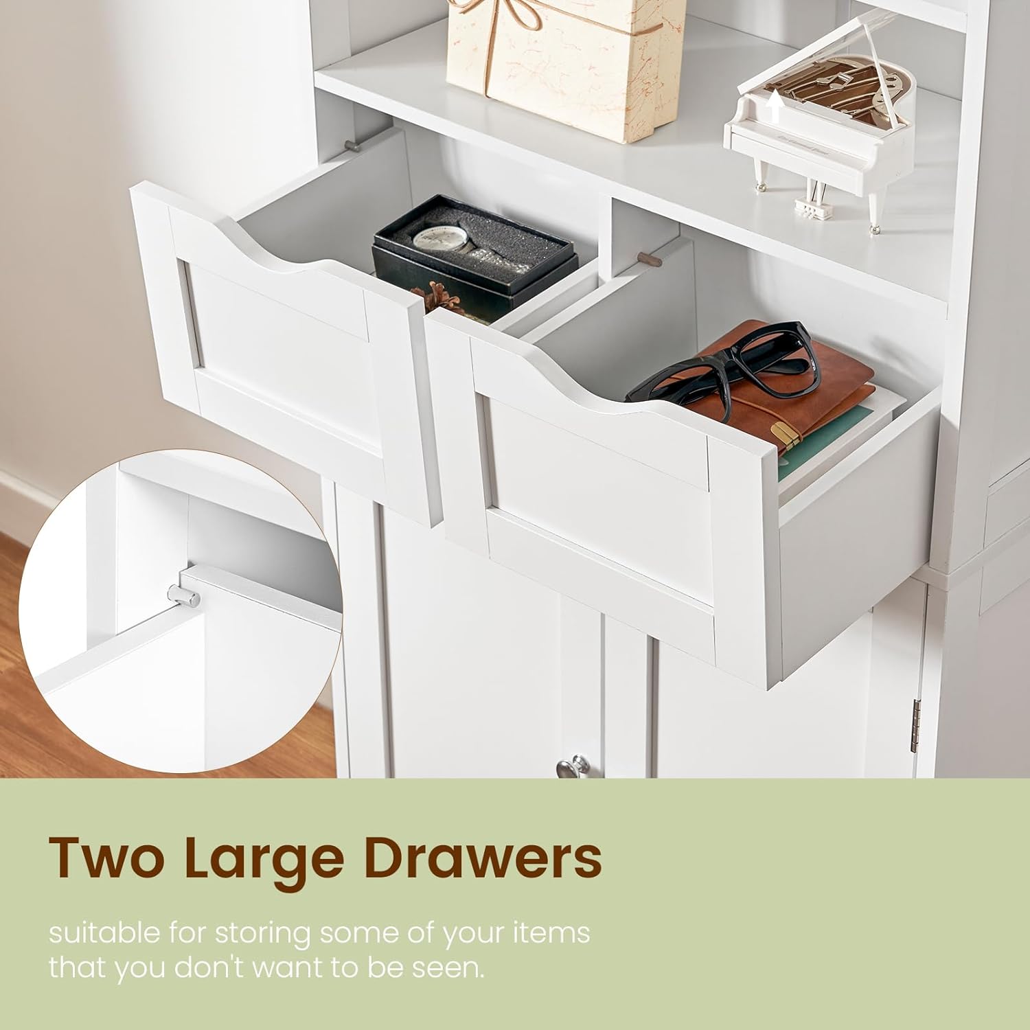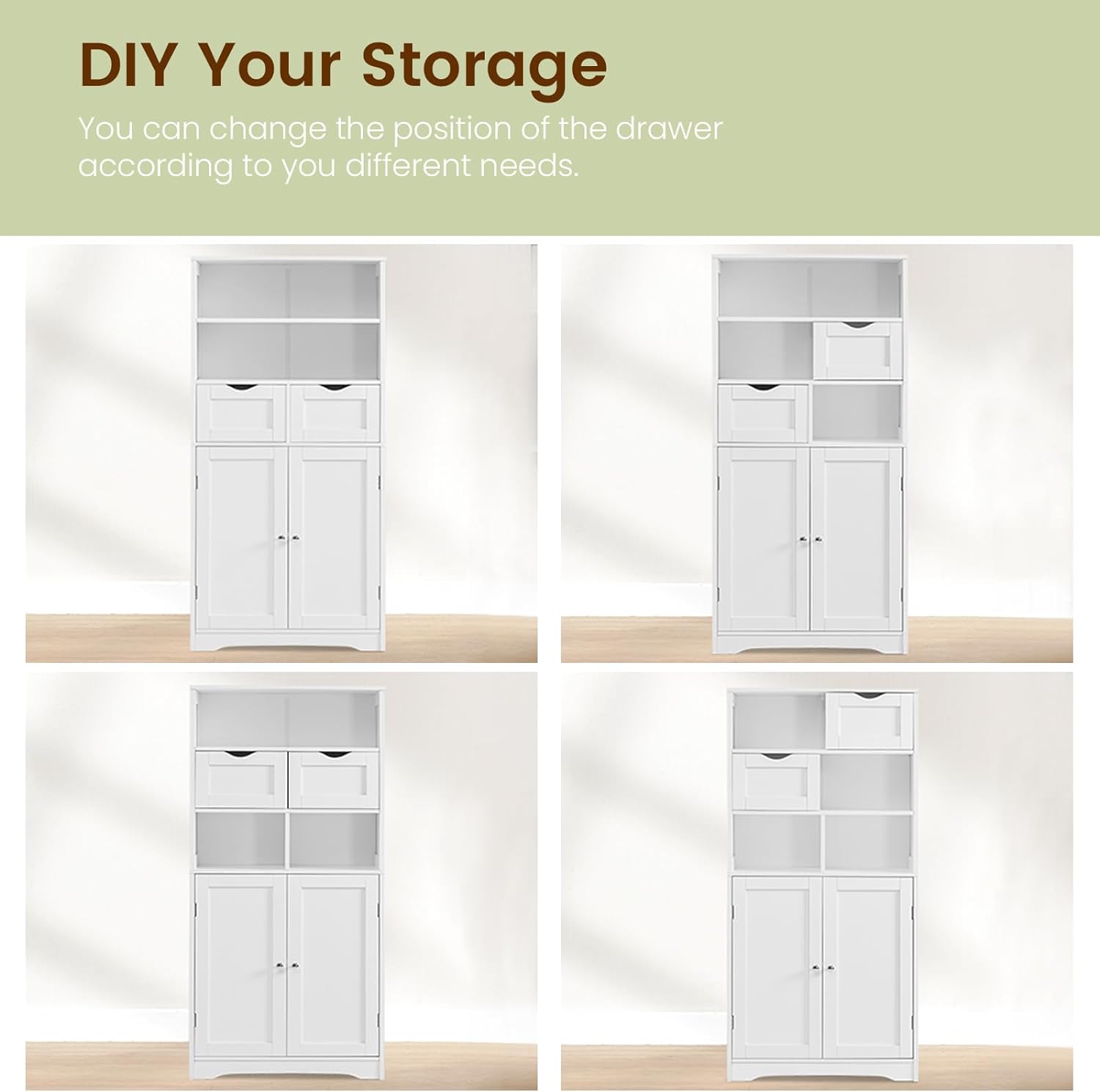 Iwell Tall Bathroom Cabinet, Storage Cabinet with 2 Drawers & Adjustable Shelves, Bathroom Storage Cabinet for Living Room, Dining Room, Entryway, White
