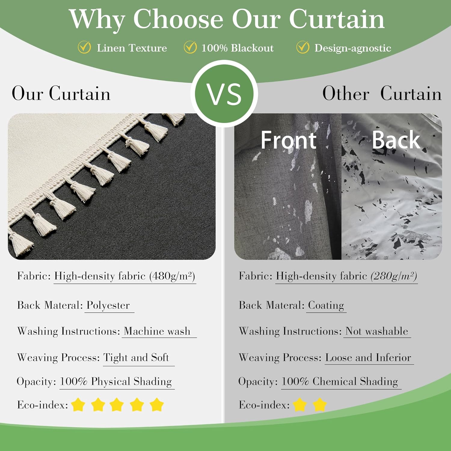 100% Blackout Linen Curtains 84 Inch Length Natural