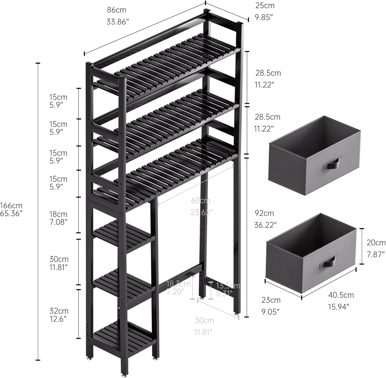 - Product Size: 11.81"D x 33.86"W x 65.36"H (30 x 86 x166 centimetrescm)