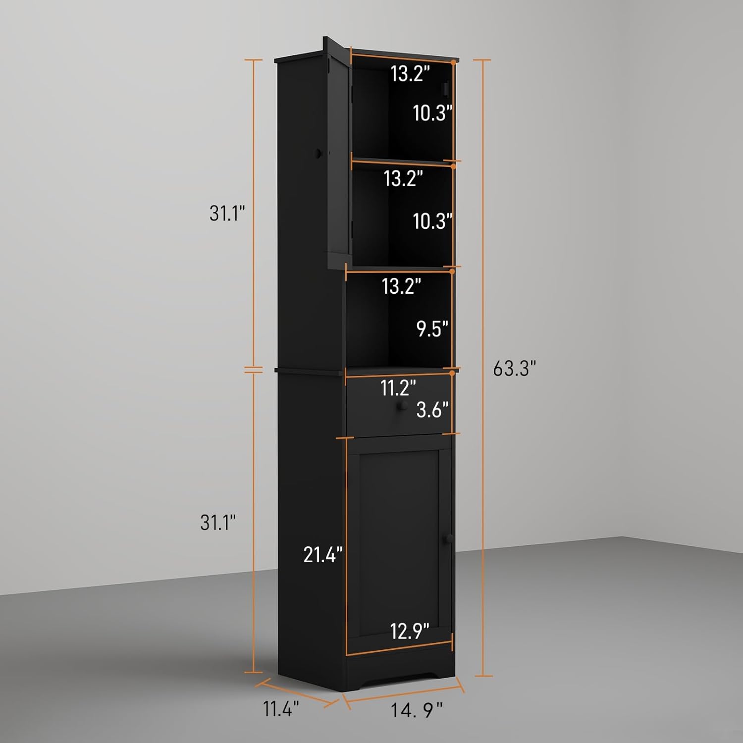 Tall Bathroom Cabinet, Storage Cabinet with 2 Doors & 2Drawer, with Ajustable Shelve, for Bathrooms, Kitchens,Entrances,Bedrooms(Black)