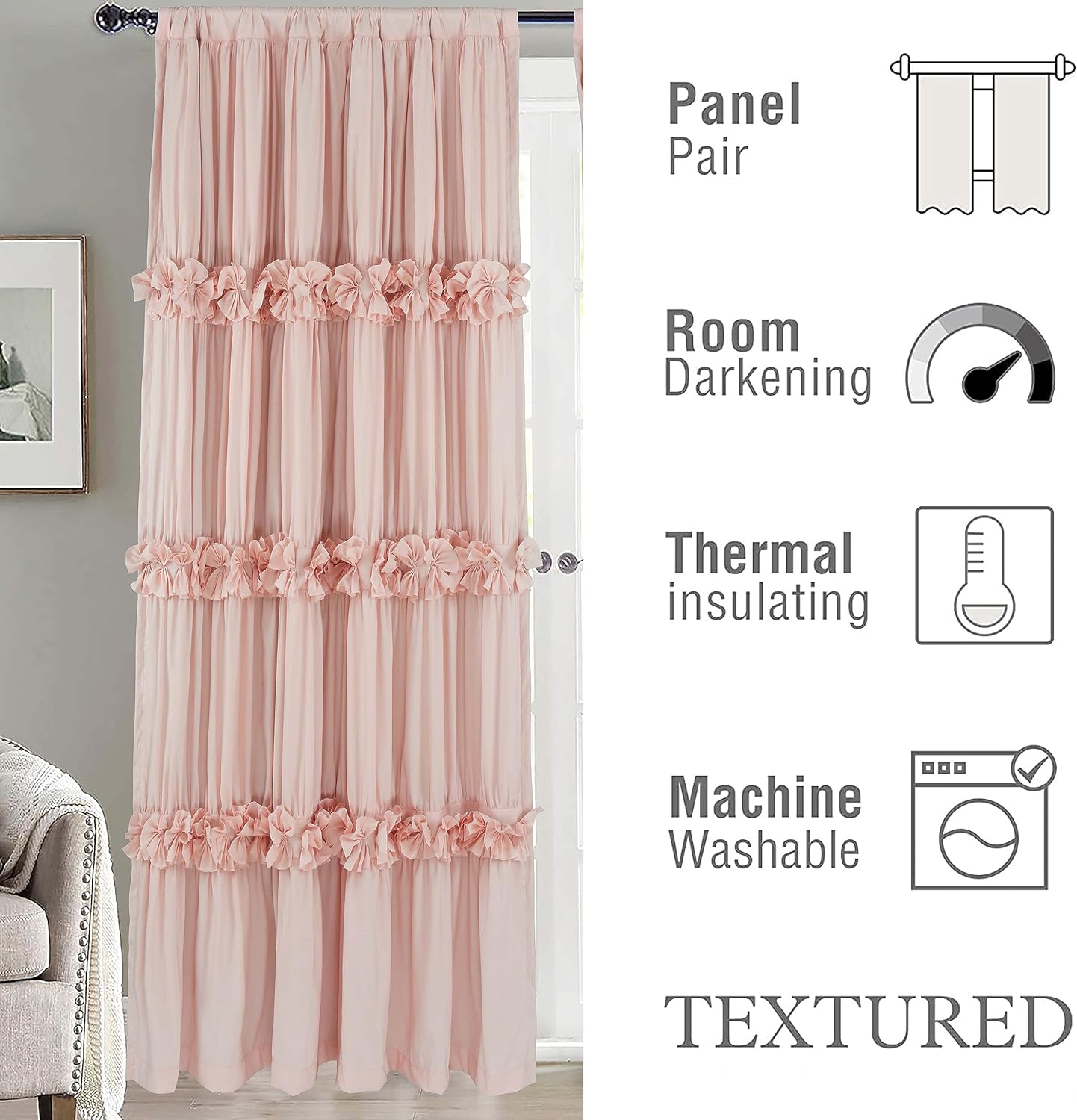 Thermal Insulated Blackout Window Curtains, 54" W x 84" L x 2 Panels, Boho Ruched Window Treatments with 3 Rows of Butterfly Flowers, Rustic Rod Pocket Drapes, Peach Pink (LQ-30)